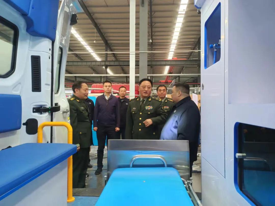 在程力公司自主研發的負壓救護車前,謝政委詳細了解了該產品的性能、特點,鼓勵程力公司擴大科研成果,多為地方和部隊生產急需和實用的應急裝備,為中國制造向高質量發展做出更多更好的積極貢獻。
